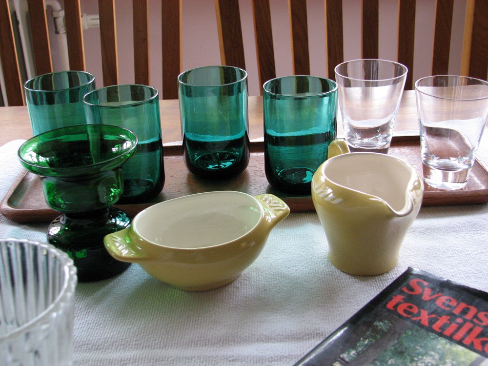 Lustigt, jag hittade två ljusstakar utan märkning, samma gröna färg och liknande linjer, de måste vara Lindshammar de med! Kolla till vänster i bilden!