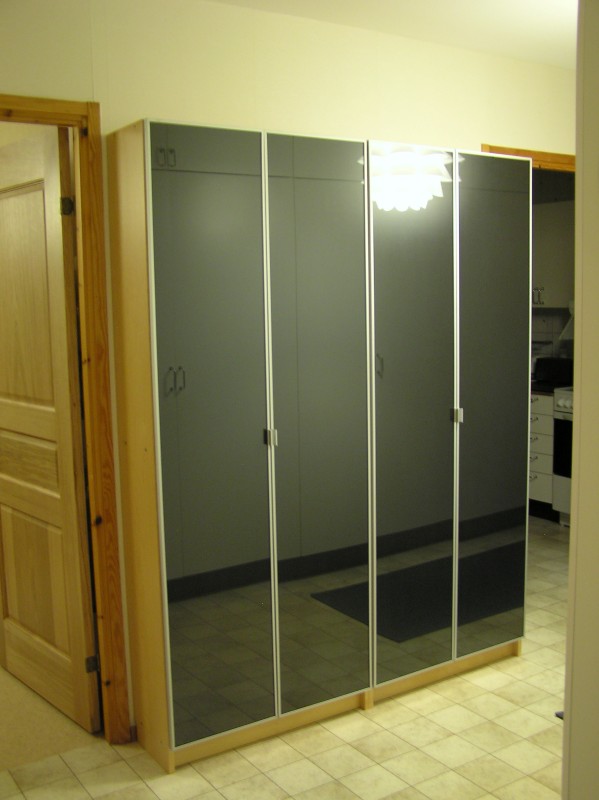 Själv använder jag mig av IKEA:s BILLY, med glasvitrindörrar MOREBO.