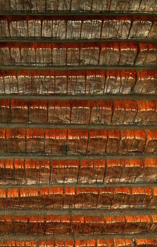 Fast det härligaste var nog att komma upp på tensta kyrkvind - ovanför de nuvarande tegelvalven. Där satt takstolarna från 1200-talet som burit upp det gamla trävalvet kvar. Själva sparrarna verkade vara av någon anledning vara i gran och huggmärkena i träet efter byggarna var hur klara som helst (tänkte säga att det såg ut som de gjort igår men det gjorde det inte - fast 1200-tal hade man nog inte gissat på om man sett dem).