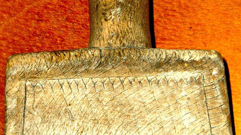 Strukturen i träbiten och ett föremål som har brukats, sen är föremålet inte alltför vanligt vilket också kan kännas bra.