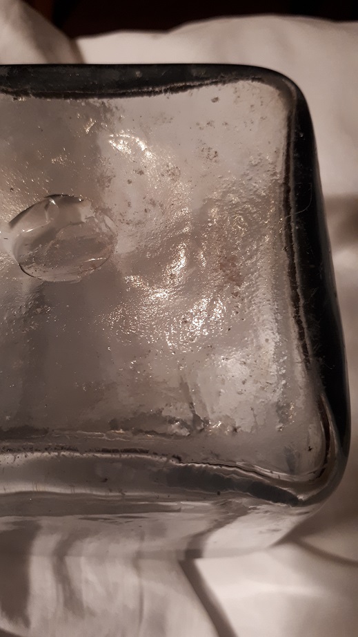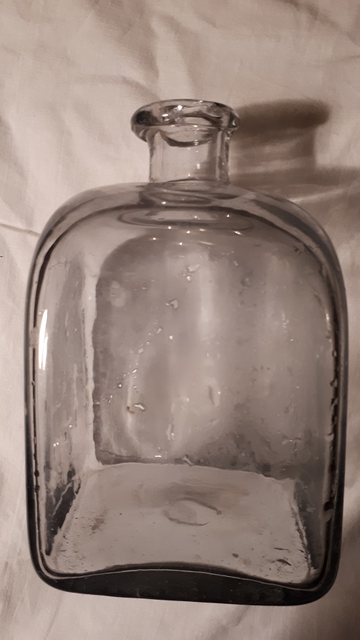 Ju längre fram på 1800-talet man kommer generaliseras utseendet och storlekarna på flasktypen till att se nästan likadana ut var de än är tillverkades. Proportionerna och storleken på denna tycker jag känns som andra halvan av 1800-talet. Men utan att se den i verkligheten är det inget annat än en gissning från min sida