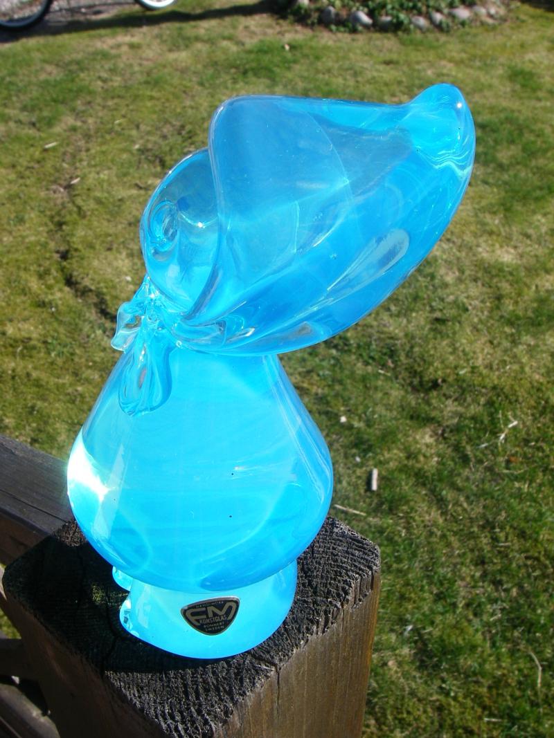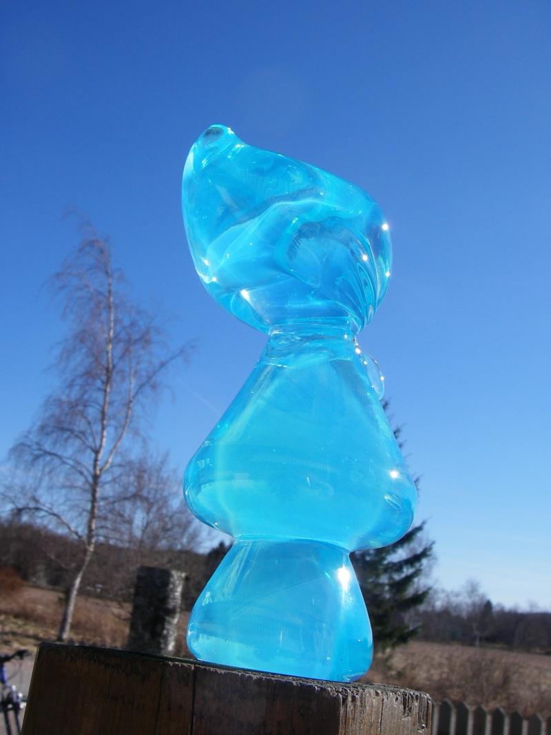 Jag funderar på din kägla. Ser den ut som en bowlingkägla? Jag har vid något tillfälle sett en blå "bowlingkägla" listad på Tradera, omärkt, glasbruk okänt.