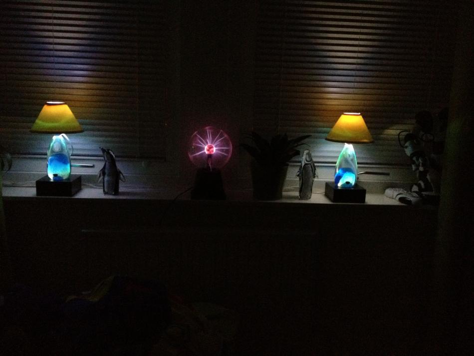 Bilden med en ensam lampa har bara "nattlampan" tänd.