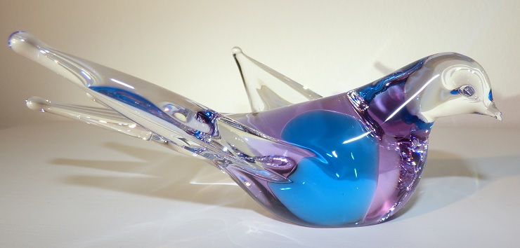 Färgen på översidan känns inte FM, men undersidan med de kontrollerade bubblorna gör det. Av de vita fåglar jag har från andra glasbruk har ingen något liknande.