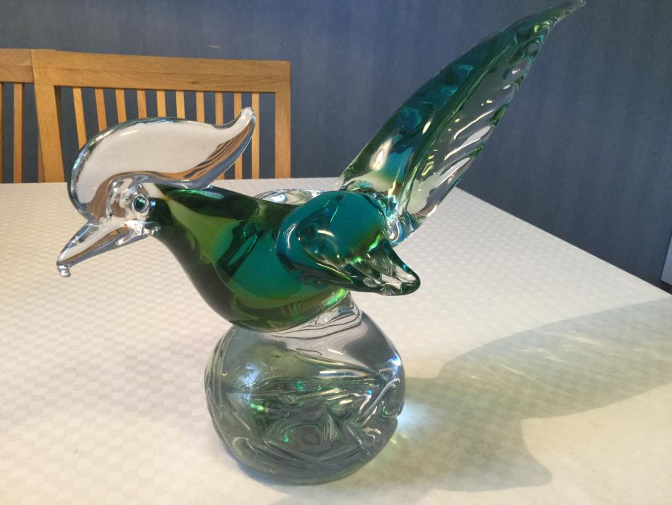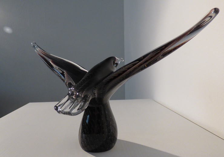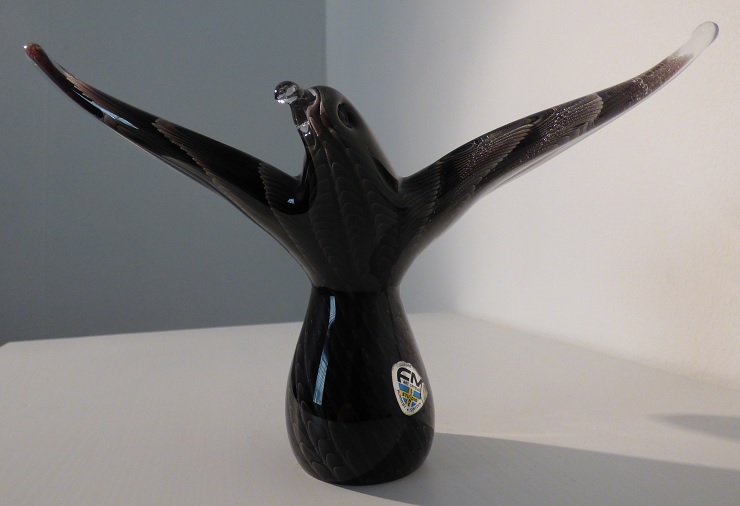 • Här är en fågel. Vingbredden är 25 cm, och höjden 15 cm. Signeringen lyder "Marcolin Sweden B-917".