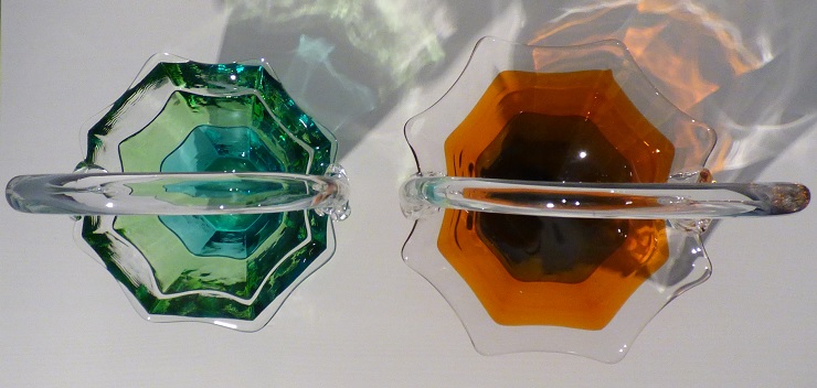 Båda är från Murano (Venedig) och har fått sina kunskaper därifrån. Hos dem arbetade även de övriga bröderna, Luigi (han som gör smycken idag) samt Giovanni som ansvarade för sliperiet. Även andra släktingar har varit verksamma på glasbruket inom olika funktioner. Under 60 och 70 talet var dessutom en hel del andra "venezianare" på mer eller mindre långa arbetsbesök. Därav den starka venezianska prägeln på stilen. Till att börja med låg koncenrationen på figurer i färggrant "Sodaglas", men med åren lyftes den svenska "Helkristallen" fram mer och mer och färgsättningen bestod en hel del i ametistglas som "röktes" eller med bladguld och olika färgpulver. Man var också bland de första att testa olika typer av kemiska sätt att "röka" glaset för att tex få fram flammiga effekter.