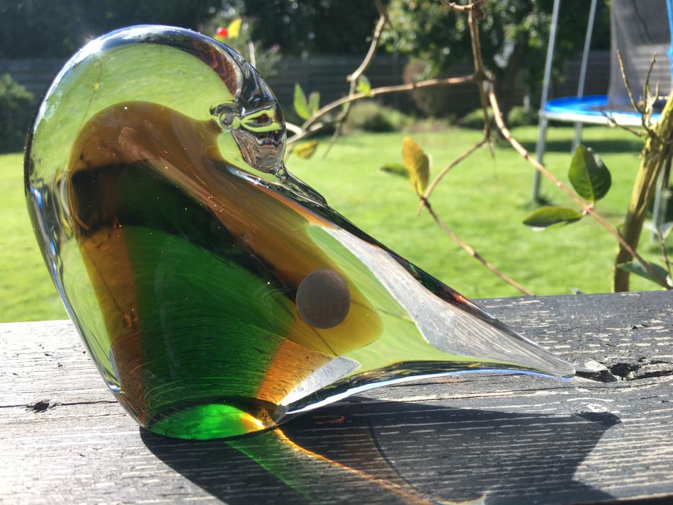 Och så en 24 cm hög och väldigt smal fågel i nästan lika exklusiva kombinationen klarglas och ljusbrunt.