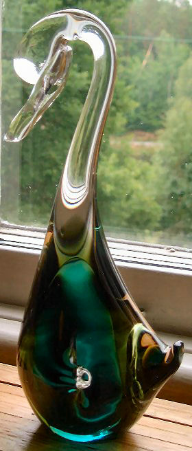 "Stor blågrön and/svan ca 25cm hög,omärkt." Vad jag kan se av färg och form så verkar det vara en FM.