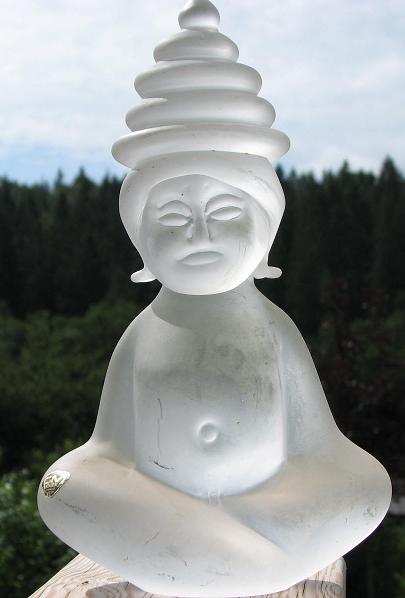 Det är Buddha, artikelnummer M-566, och den ska enligt katalogen sitta på en sockel. Din verkar ha förlorat sin sockel om det nu inte även såldes modeller utan.
