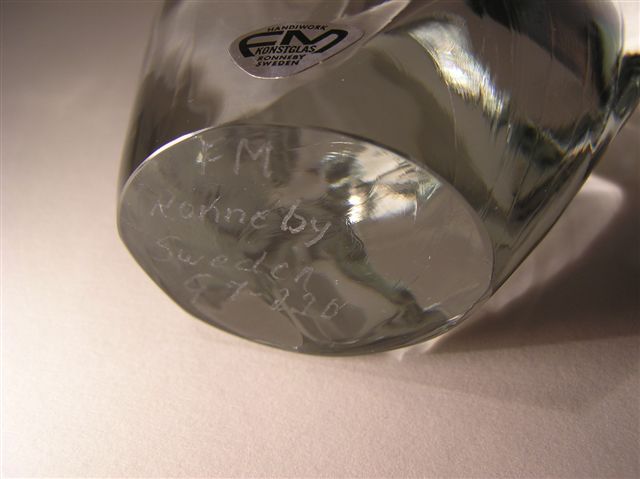 Jag såg på dina bilder att du har en del etikettmärkta med Royal Sweden Crystal. Denna etikett användes på en del exportmarknader och tack vare ordet "Royal" vann man större atraktivitet. Man eleminerade även misstolkningar framförallt i tyskspråkiga länder där man oftast uppfattade ordet "konstglas" som något konstgjort glas d.v.s. plast eller liknande