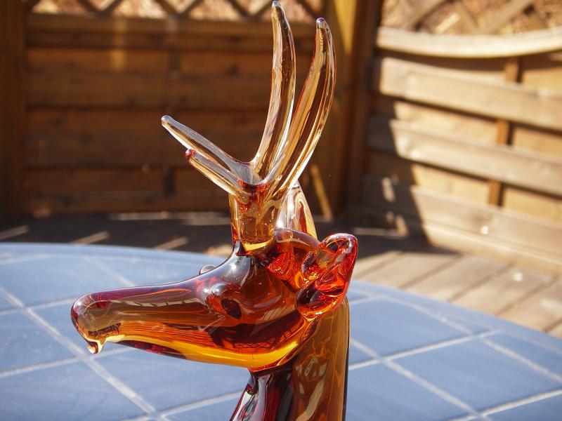 Stort intresse för Hjorthuvet, det är kul. Det är Gränna Glasbruk, på original mahognysockel (tror att det var mahogny). Ej signerad. Mitten 70 talet. Borde vara första sortering, men märket saknas. Jag skall se om jag kan ta en bild på ett liknande nästa gång jag är i Gränna.