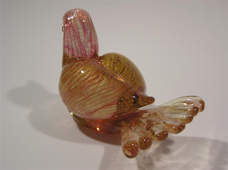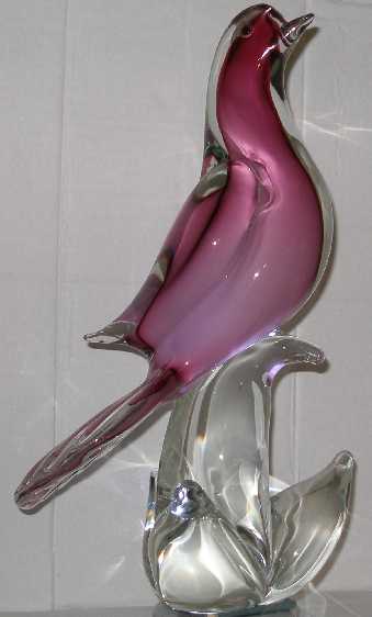 Har också försökt hitta vilket glasbruk som gjort min fågel men det är inte lätt, den har ingen märkning men ser helt klart ut som Murano. Jag har fått förslag på bl.a. Seguso, Barovier&Toso och Salviati men ingen vet säkert. Nåja, den får fortsätta att 'bara' vara Murano tills någon en dag kanske kan identifiera den åt mig. Jag tycker dessa fågelmodeller är väldigt trevliga, dom har fina stjärtfjädrar. Jag tar med ett par bilder till .....