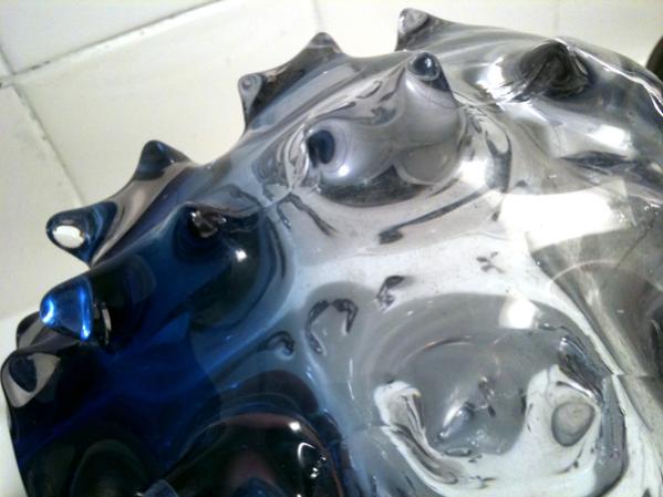 Jag plockade upp denna fina lilla vas på en loppis i dag och tycker att den ser handgjord ut. Glas är ett nytt område för mig