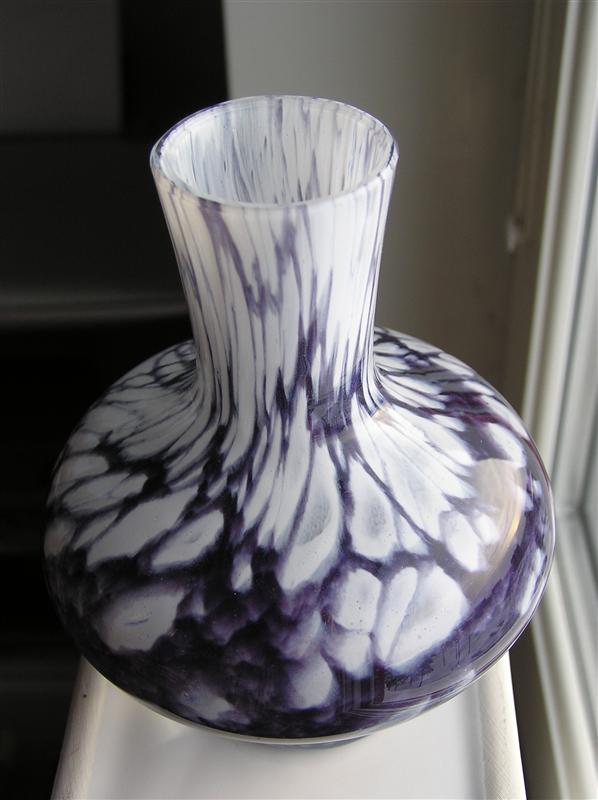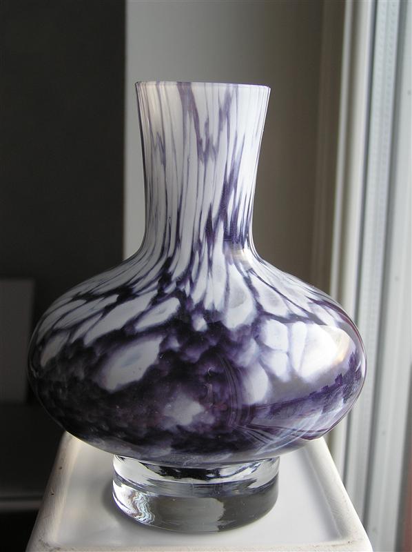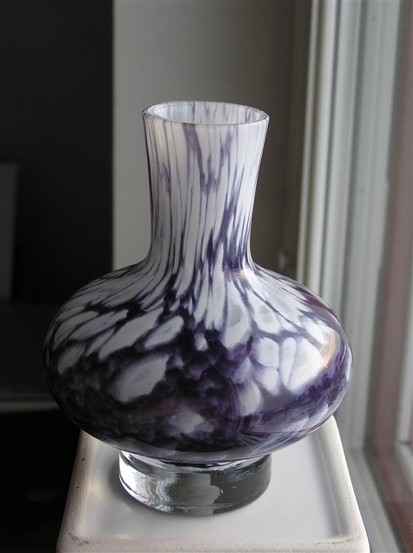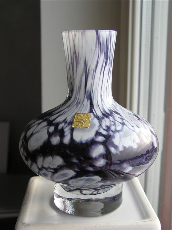 En liten vas, ca 12,5 cm hög, har letat sig hem till mig. Den har etikett men ingen signering i botten.