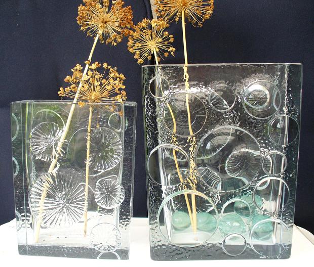 Frågaren får inte ett bestämt besked i tidningen, men ett sådant torde komma i nästa nummer. Här på ovanstående PES-sidor kan man nämligen få besked, att det gäller Gunnar Nylund på Strömbergshyttan 1954 - 67. "Syskonvasen" här i bilden är nämligen signerad: "B 701 C 539 GN Sh". B står vid modellnumret, C vid mönsternumret, GN = Gunnar Nylund och Sh står för Strömbergshyttan.