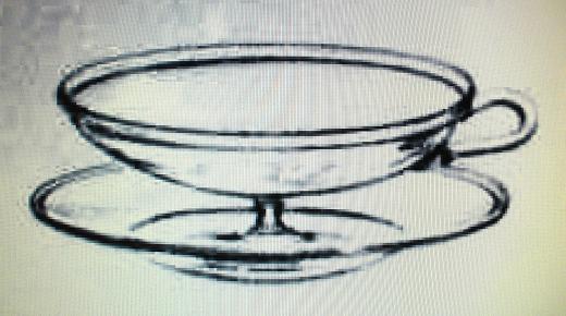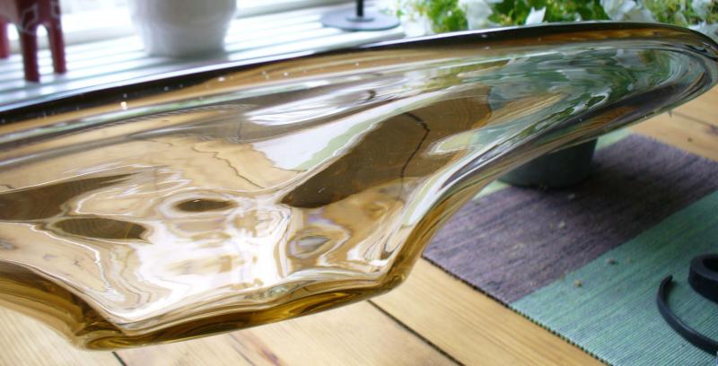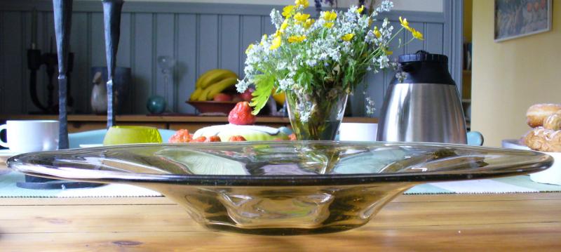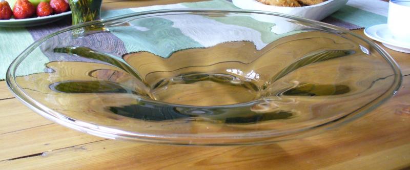 Faten L 2 som har vikt kant och är optikblåsta, designades av Gerda Strömberg 1933 - 34 och finns i katalogen i storlekar 270, 320 och 380 mm. Denna storlek 450 mm finns inte med i den katalog som omfattar 1933 - 1949.