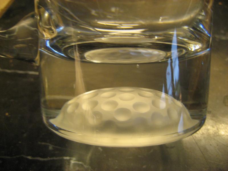 Känner någon till dessa ölsejdlar? De är helt raka med hänkel men har en tjock botten med en halv golfboll i frostat utseende.