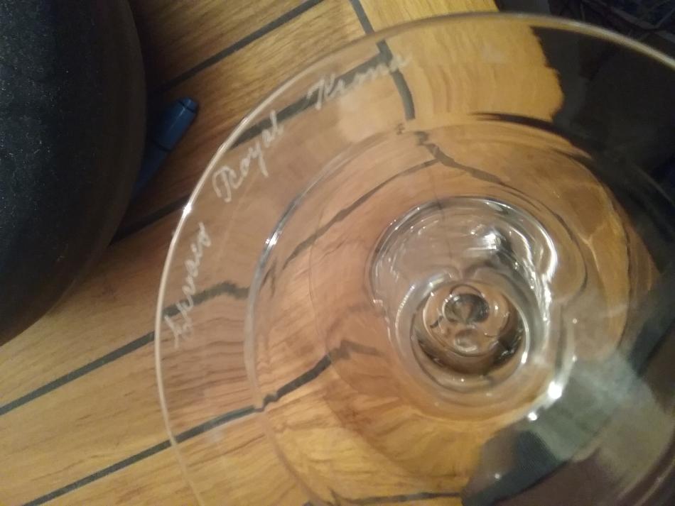 Frågan är om det möjligen står Ernqvist som signatur. Päivi Ernqvist (1946-) var formgivare en kort period vid Johansfors glasbruk och dessa produkter såldes även via Royal Krona.