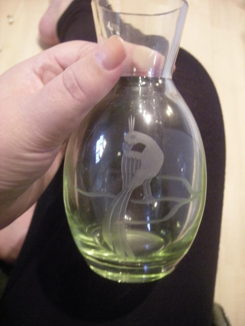 Hittade denna vas på loppis, och den byter färg beroende på ljus och vinklar. I vissa vinklar är den i princip helt grön, så kan det vara uranglas? Fastän den är graverad?