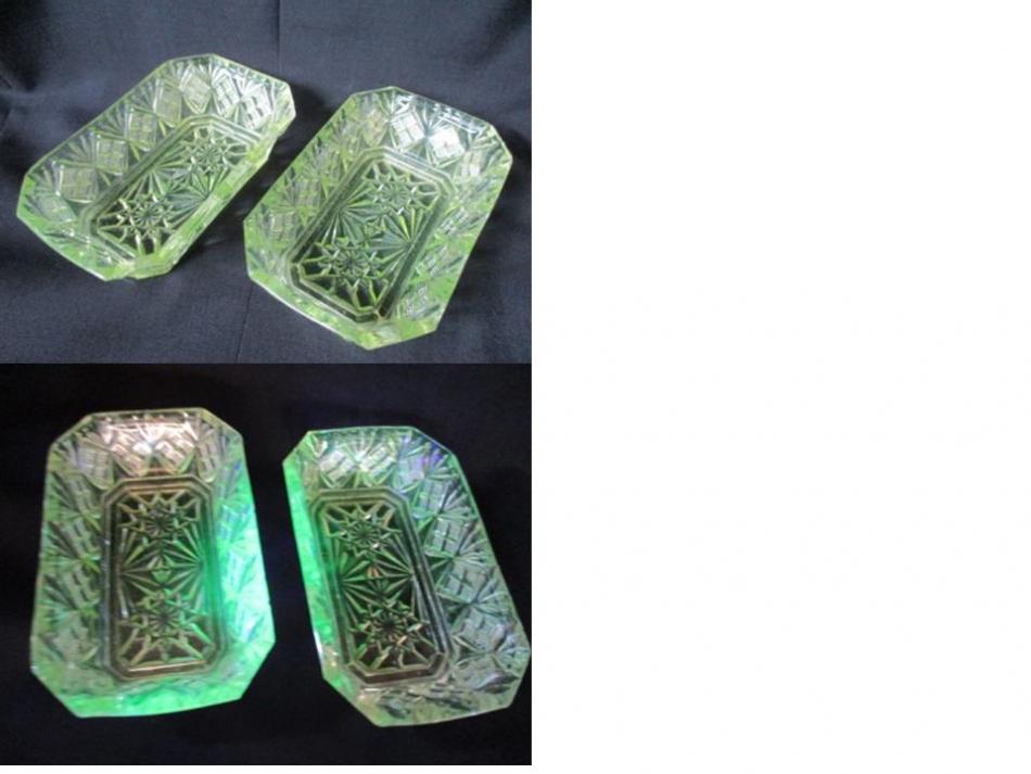 Allt som glimmar grönt är uppenbarligen inte uranoxid, är det någon som vet vad mer det är som färgar grönt? Och varför är just uranglaset så begärligt, när det finns massor med annat grönt glas som har mycket starkare färg?