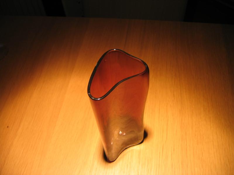 Vaserna är lila respektive genomskinlig men åt det mer mörka hållet, lite inslag av svart. Svårt att beskriva.