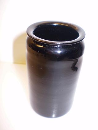 Denna burk tror jag inte tillhör Hyalithglaset. Den har säkerligen blivit mörk i glasmassan pga av olika missfärgningar av glasmassan.