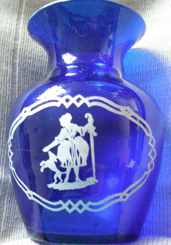 Mary Gregory-tekniken har ett med gravyr- eller sliptrissa kasat och sedan konturmålat motiv i emaljteknik. Motiven utgörs av barn avbildade i silhuett och vanligen omgivna av gräsartad vegetation. Detta framgår dels av den parfymflaska som Lars Kallin har visat på den här ovan länkade tråden och dels av de båda vaser som jag studerade i fjol i Gusav Fröding-rummet i Mangskog i Västra Värmland. Tekniken framgår också av de bilder som finns på Londonlänken nedan.
