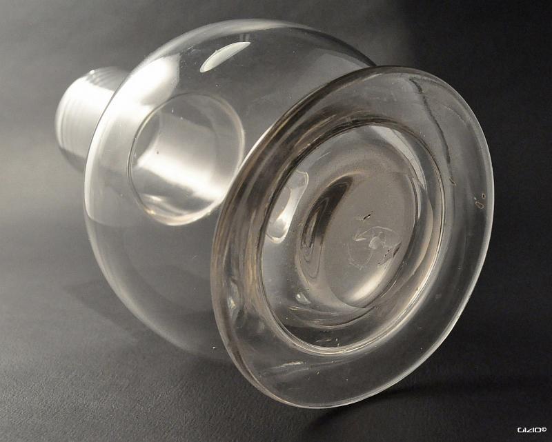 Vad tror ni om ev ålder på en sån här skapelse. Upptill ser man drivningen väldigt tydlig. Det finns lite bubblor här och där, men inte många. Puntelmärke i botten som synes.
