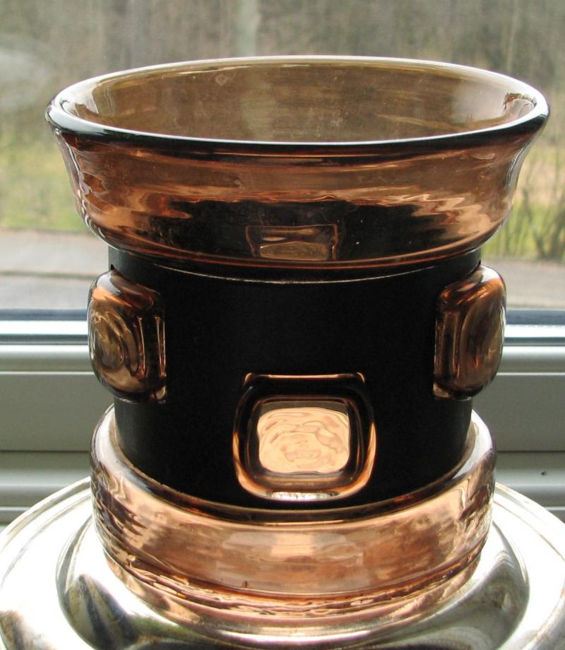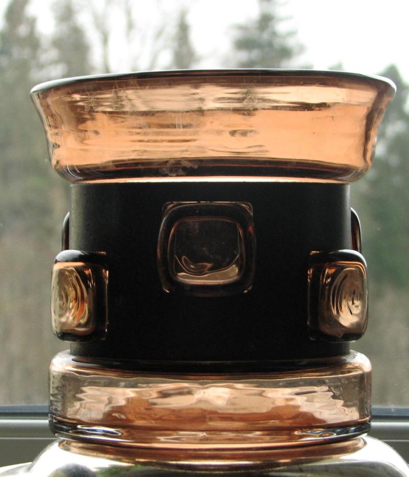Den här vasen kunde jag bara inte låta bli - har inte sett ngn liknande förrut. Fick ett tips av en PES:are att det kanske kunde vara Owe Sandberg för Kosta. Har googlat på honom men fann inget, slipad dekor på vaser, men inte den här tekniken. Ett annat tips var Kumela. Hittade inget där heller.