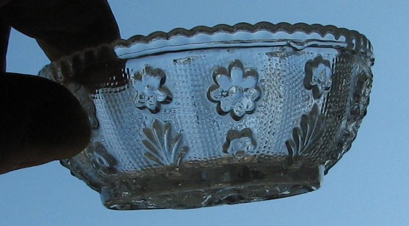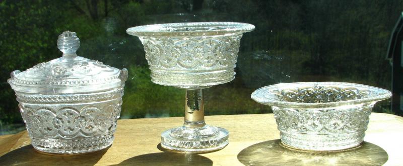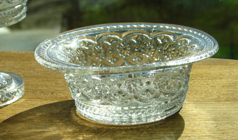 När jag ändå höll på att rota i skåpet dök den här svajiga skålen upp som kompletterar de två övriga som jag visat här tidigare, jag gillar att utöka obejkt med samma mönster, oj nu erinrade jag mig ett saltkar oxå, så då blev det fyra olika delar