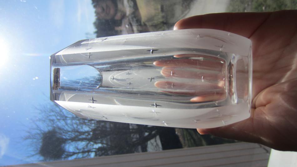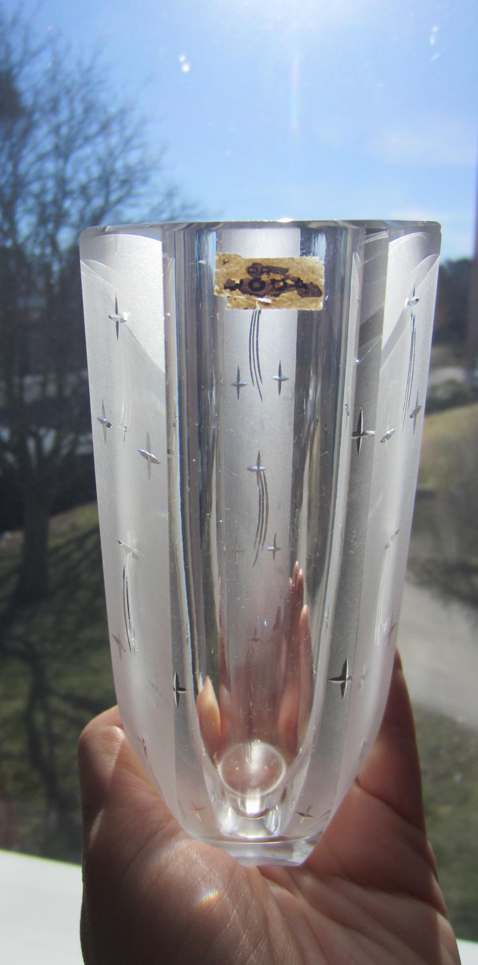 Jag tror att det står "Prima BODA kristall" på etiketten och på bottnen står det BODA.