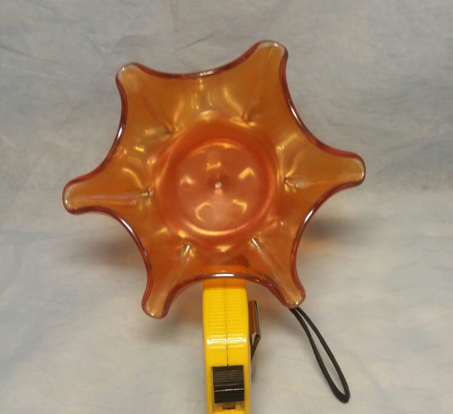 Den mäter ca 14 cm i höjd och foten är ca 8 cm i diameter. Inga stämplar eller märkning.
