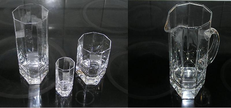 Min första fråga är om någon vet vad denna serie heter. De liknar Iittala Kalinka, men det är det inte. De är trekantiga i botten. Hoppas bilden visar hur de ser ut.
