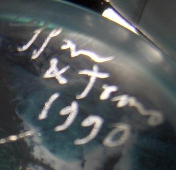 Jag har ett annorlunda fat,höjden är ca 3 cm diametern är 22,5 cm och den är signerad, men jag kan inte bli klok på vad det står. Är det någon som kan hjälpa mig? Och kanske även om ni vet vem det är i så fall.....