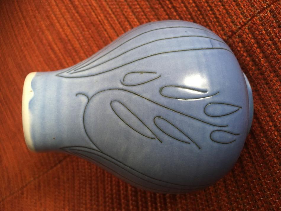 Hittade i våra gömmor denna vas från gissningsvis 1940-talet. Den är signerat TL och jag antar att det är Tyra Lundgren från hennes tid på Gustavsberg. Är detta en serietillverkad vas och har den i så fall någon benämning? Har den något värde utöver det dekorativa? Höjden är 13,5 cm.