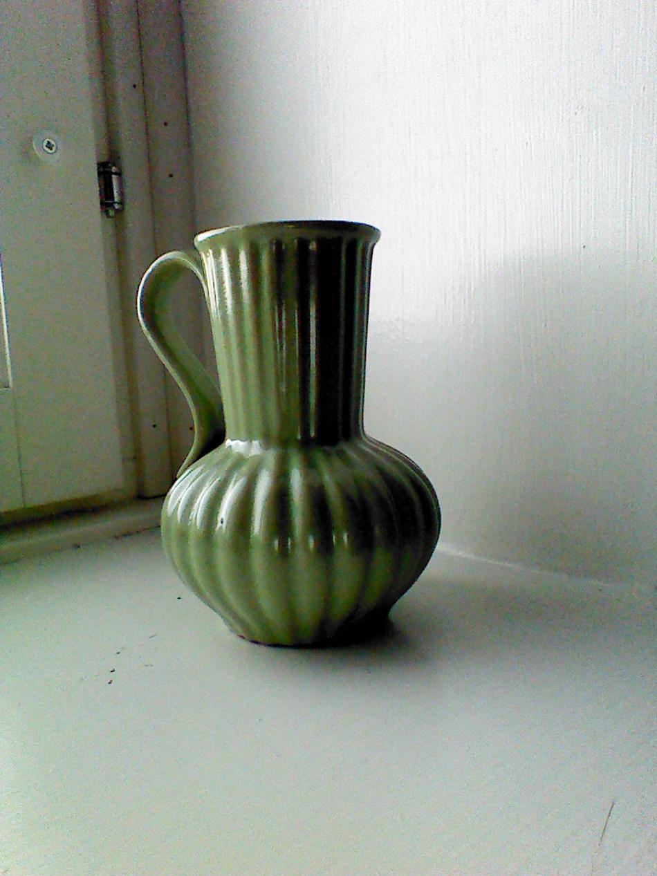 Liten grön kanna. Osignerad. Men kan den vara från Upsala Ekeby?