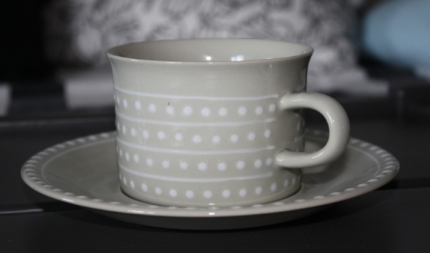 Köpte denna mycket snygga tekopp på Erikshjälpen häromdagen. Den är i nästan nyskick. Någon som vet något om den? När den tillverkades? Vad den heter? Och vad betyder lilla märket som ser ut som en sol under signaturen?