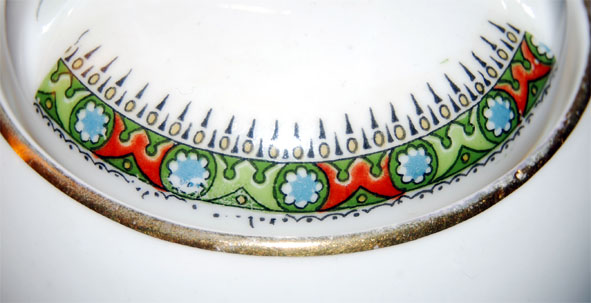 , samma servis, men nu är den alldeles knallgul. I boken dateras den gula varianten till runt 1910 så vi ligger nog ganska rätt i tid