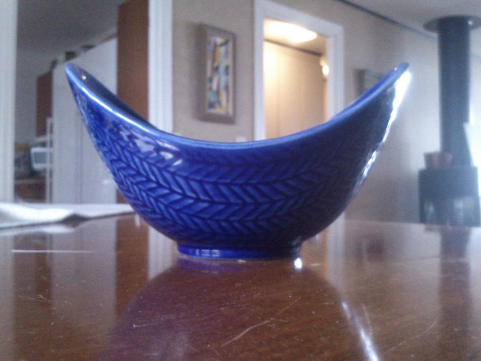 Hallå Marcus, Trevligt att du seglade in i en blå snipa. Välkommen. Blå Eld har nog varit på tapeten tidigare, men här lite fakta: Tillverkades 1951-1971. Gjordes både i blått och vitt. Dekor och formgivning Hertha Bengtson.