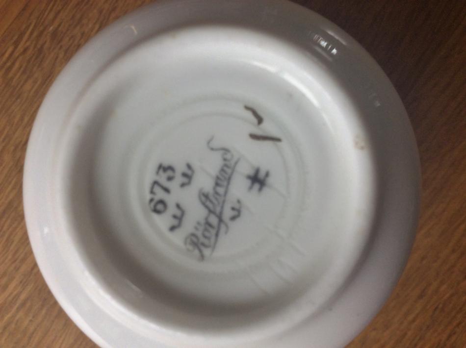 Jag undrar om någon vet vad dekoren på dessa koppar heter.Under koppen står det Rörstrand 673.