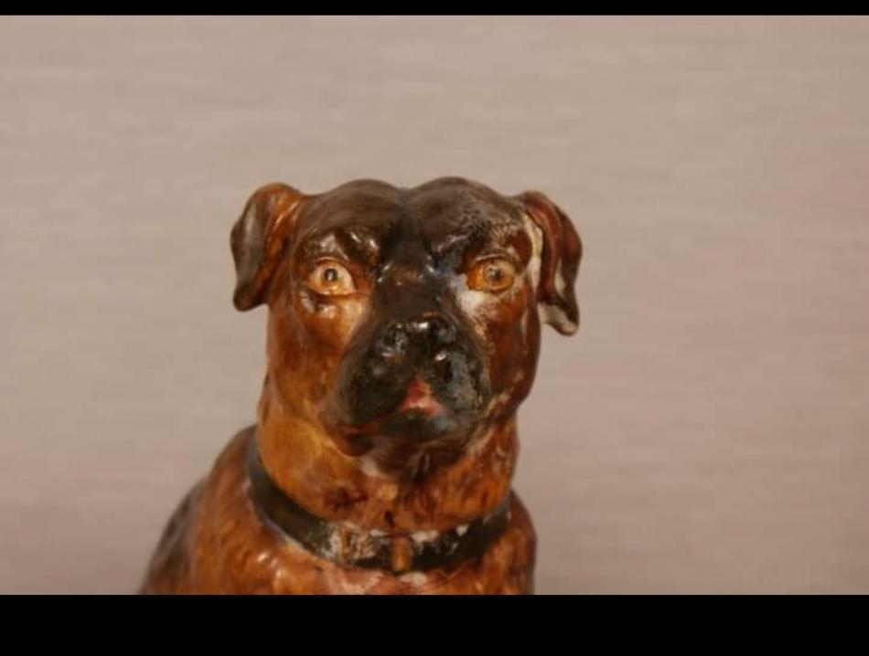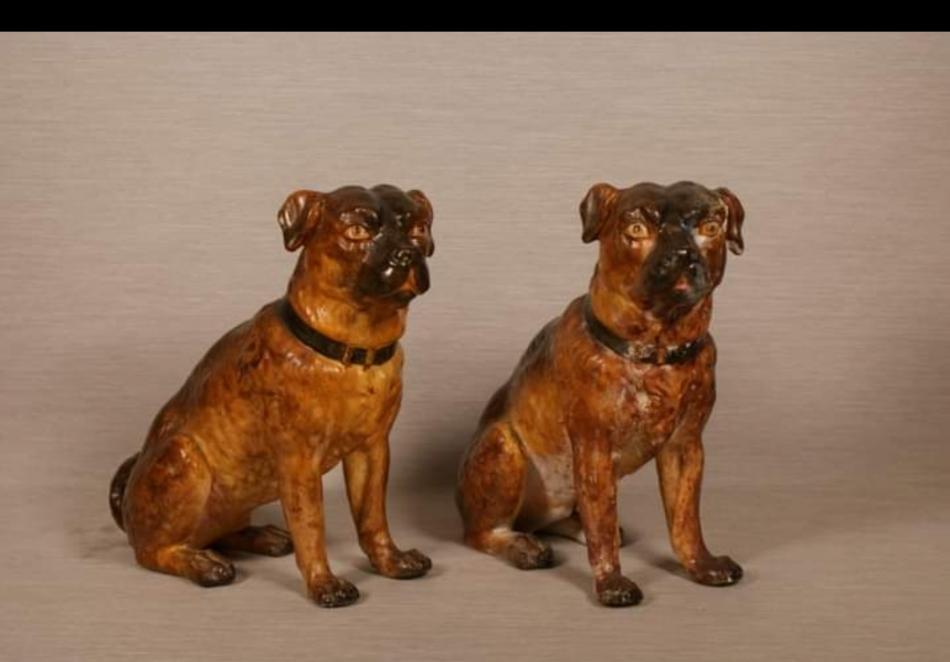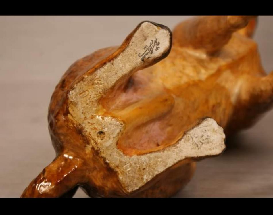 Nja, jag vet inte om jag tror på det. Antar att du tittade på stämplar.se . Exakta utförandet av Rörstrands märke var varierat mycket mer. Det ser ut som typisk majolikaglasyr och typisk majolikamassa, modellen känns inte alls 20/30-tal. Efter 1884 är vi ju helt klart och hundarna kan mycket väl ha tillverkats in på 1900-talet men tror inte så många år.