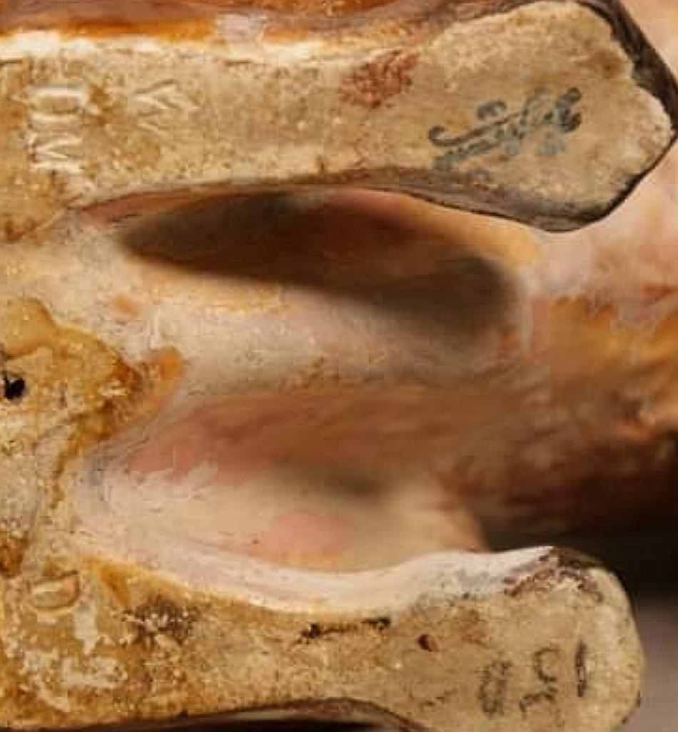 Är det W och UM? Vi har pratat om de här bokstäverna tidigare. De kan handla om verkmästare som kontrollerar varorna, åtminstone vissa är formnummer på formarna som använts. Men de är inte unika för specifika föremål. Jag vet inte att någon lyckas hitta någon systematik bland dem.