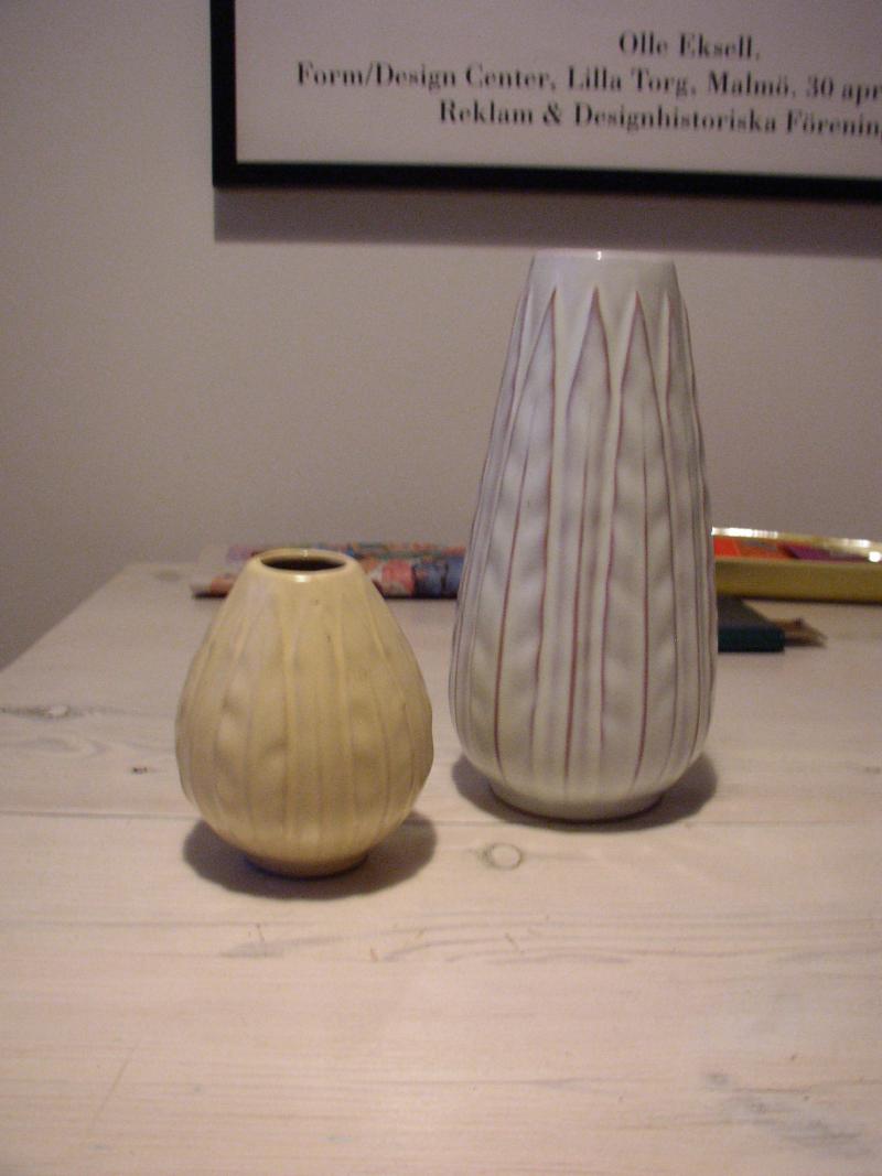 Har en vas som jag är säker på är Ekeby, forgiven av ALT (högra på bilden), som jag tycker är väldigt snarlik. Hoppas därför på att även den lilla kan vara formgiven av samma person?