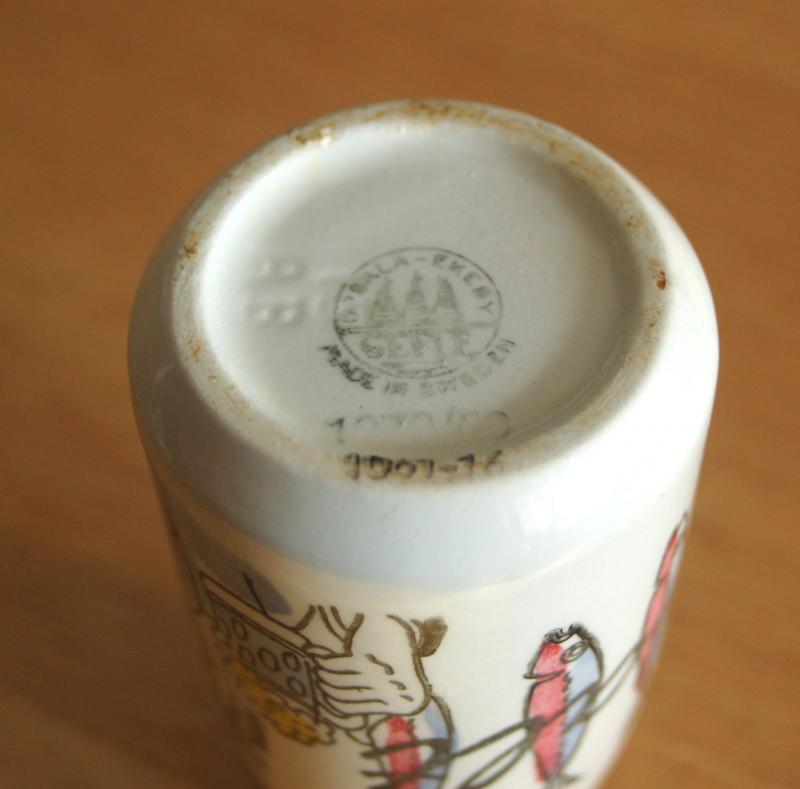 Hittade detta gamla saltkar i lådorna... men jag kan inte hitta något om det trots att det står en hel del i botten om det. Att det är Upsala-Ekeby är vad jag vet... trots det så är det inte helt lätt att hitta rätt, antar att det är mer än jag som stött på problem då det gäller att hitta info om just Upsala-Ekebygrejer.