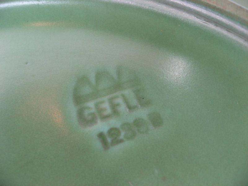 Jeg kom over dette grønne fatet fra Gefle på en auksjon i Sverige. Tror det er i stengods og om jeg tyder stemplet rett, så står det 1239B bakpå. Jeg er norsk og kjenner ikke svenske produkter så godt. Derfor lurte jeg på om det var noen snille mennesker der ute som kjenner denne serien og kan fortelle meg ett eller annet om fatet?
