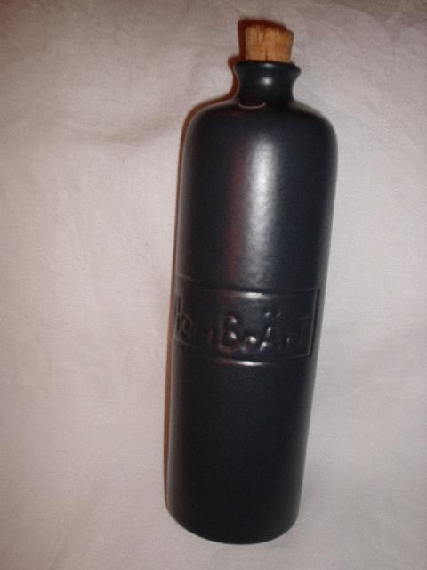 Vid mitt besök hos myrorna i dag,såg jag en keramikflaska som det stod hembränt på, men brydde mig inte. Vadå hembränt, dålig smak. Nästa gång jag gick förbi den hyllan såg jag en blå UE etikett och tänkte att någon satt dit den. Lyfte på flaskan och det står Ekeby Sweden i botten. Ingen mer signatur. Har letet men inte hittat något om flaskan. Flaskan mäter 22 cm utan kork. Någon annan som vet vem/när?