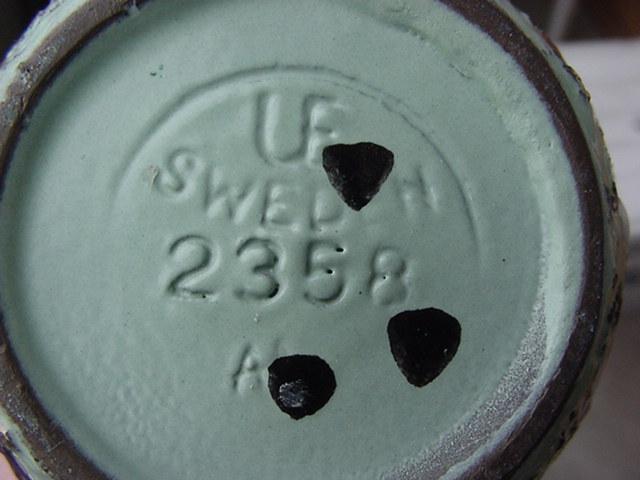Köpte denna vas gjord av Ingrid Atterberg. Jag ser när jag tar in bilden i Photoshop att det står UE coh ett nummer som börjar på 2. Så jag kan inte härleda den. Men frågan är varför denna ljusgröna lasyr över signeringen? Skall man försöka fä bort den? I såna fall vet någon hur? Eller förstör man den med lite fätande färgborttagningsmedel?