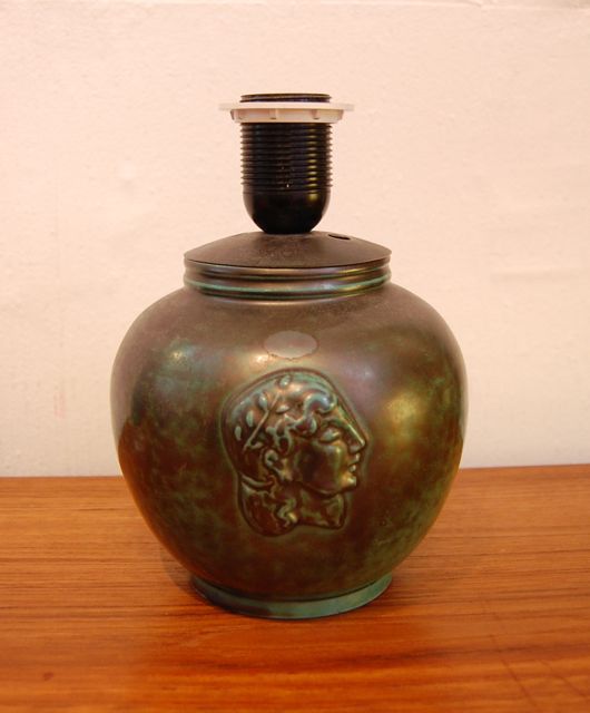 Kul och mycket vacker sak. Kan nog vara en lampfot, har dock sett liknande urnor (med lock) men inte just precis denna. Kan vara efter S:t Eriks produktion (som bytt nummer)