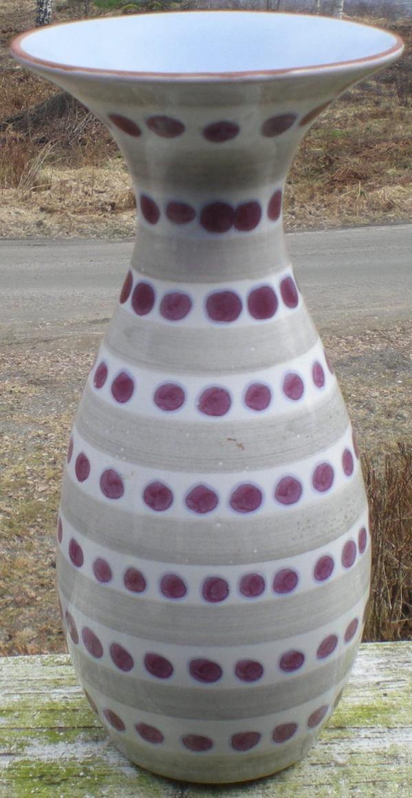 Jag vet att måtten inte stämmer, det faller kanske på det, men modellen känns som Thomson, dock finns det ju fler potentiella i listorna på VL eller på okända som slutar på en 8...Ursprungligen postat av Kolmårdstrollet Visa inläggNär jag såg vasen tänkte jag Thomson eller V.L. Har också tittat på 228. De mått som Söffe uppgivit stämmer inte. Om vasen är bredare runt midjan än upptill tror jag som Tallen, 228.