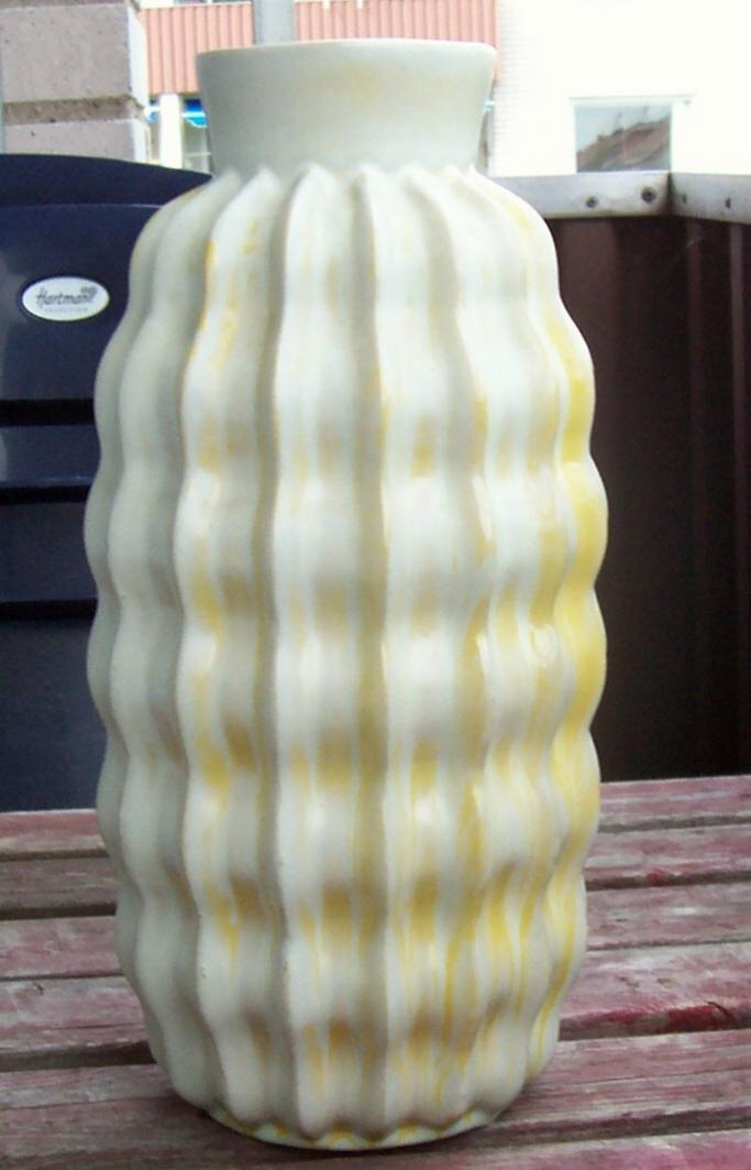 den här 30 cm höga vas är djupstämplad ekeby och som jag tror 280 den ser ut som en stor mjukglass är det en anna-lisa tomson vas??????